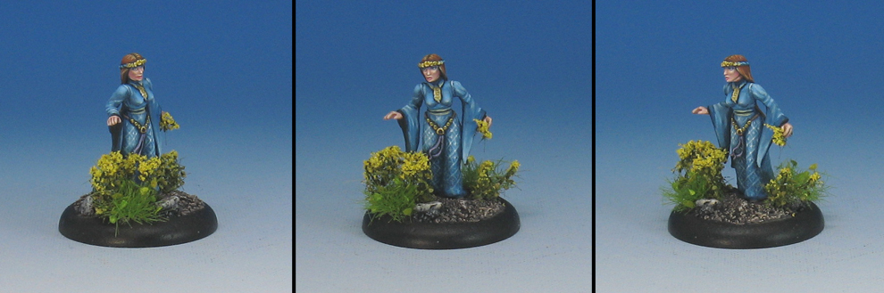 When I uncovered this unknown miniature from an old batch of RPG figures, I thought that she would be a perfect test for a new kind of foliage that I was able to obtain this week from Hangar 18.