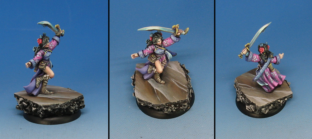 I thought that I would have a little bit of fun with purples and pinks on this Reaper Miniature. I forget what shade of Reaper Blue/purple which was the original mix, but it was quite nice when combined with a lighter flesh color.